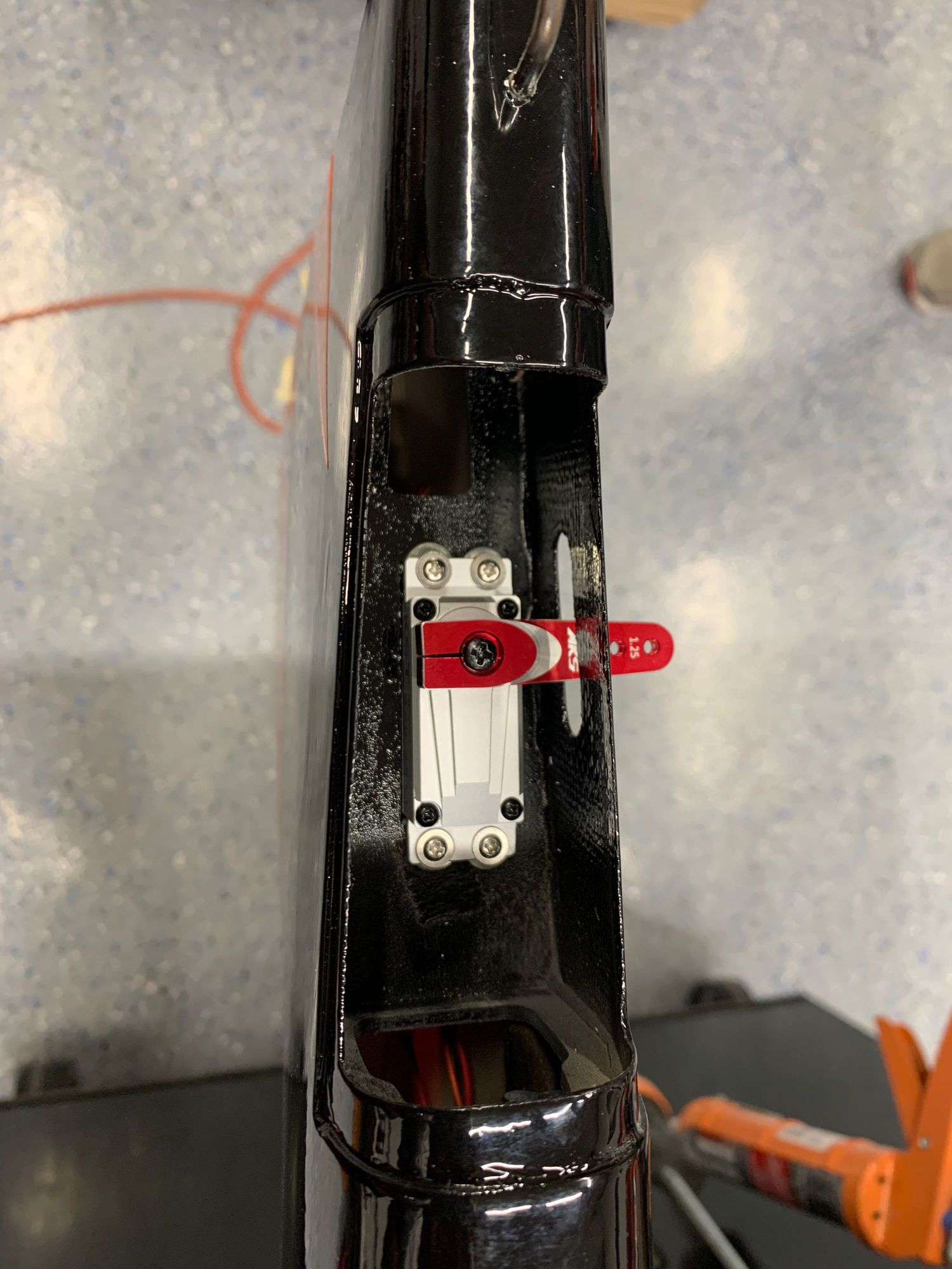 Rudder Servo Mount. If no rubbers are used, you may have to install a washer.